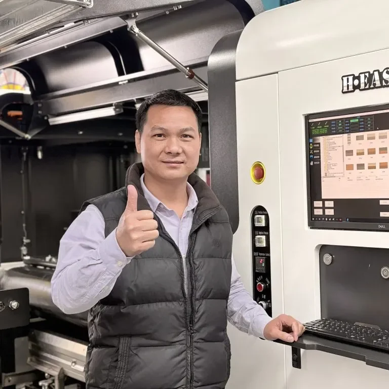 H·EASY designs and builds digital textile printers in China. With in-house R&D, full-machine manufacturing, and field-service know-how, we deliver DTG, DTF, and roll-to-roll platforms that move brands and factories from sampling to stable production—faster and at a lower total cost of ownership. Our traceable QC, ΔE color audits, and 72-hour burn-in turn reliability into measurable results.