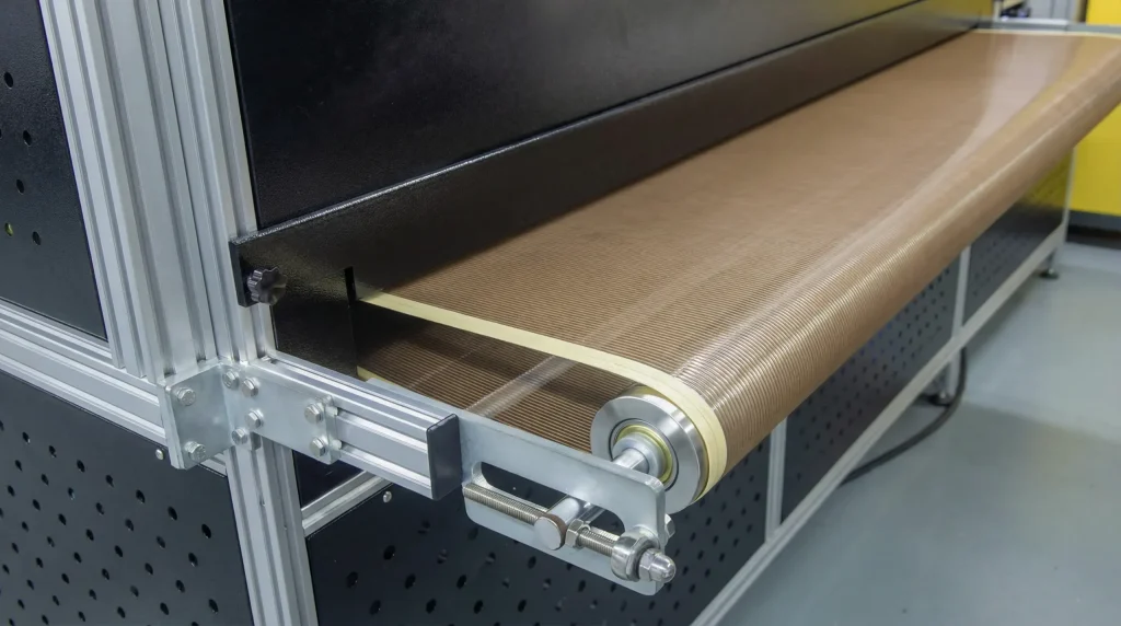 We use robust dry-burning electric tubes for the Teflon belt drying, instead of cheap heating lamps that are notorious for literally burning the adhesive belt.