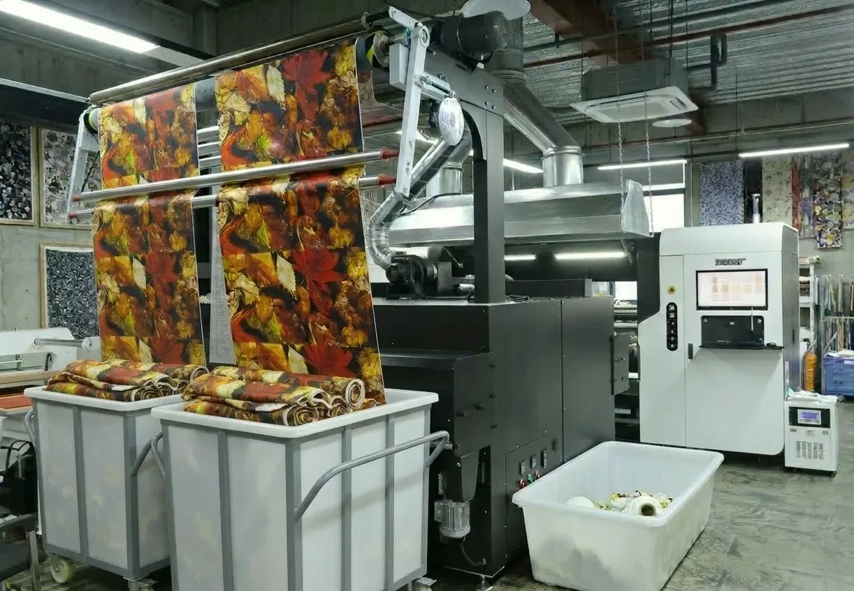 A home textile producer adopted a double-lane reactive setup for repeat-driven orders, combining digital flexibility with production-scale output for bedding and decorative fabric programs.