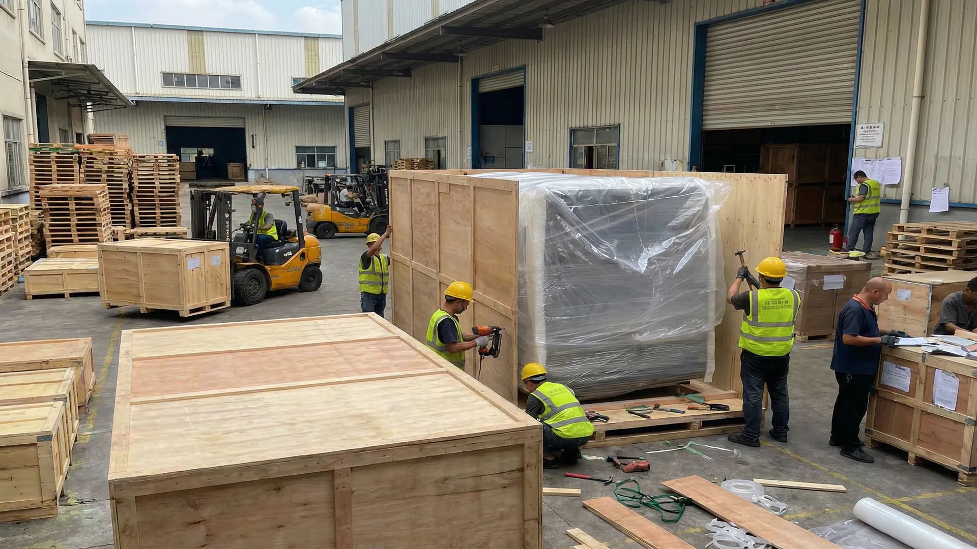 We use heavy-duty export wooden packing designed to protect precision components such as head plates and motion structures during sea freight.