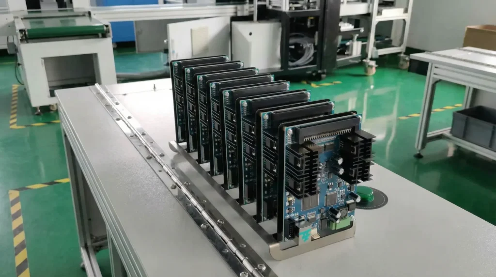 We write our own proprietary drive boards specifically tuned for Ricoh textile printing. Since 2013, our R&D extracts 1.48m/s carriage speeds without compromising stability.